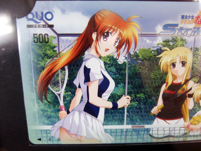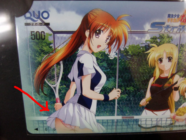 そのQUOカードは、なのは、フェイト、ヴィヴィオのテニスルックのイラストで、なのはは、結構食い込んでいるピンクのアンスコが見えちゃってましたw