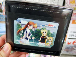 これは、公式の商品説明によると『時空管理局のロゴ入り本革製財布と、QUOカードのセットです。財布に入れて持ち歩けば、いつもなのは達と一緒です♪』と紹介されている、財布とイラスト入りQUOカードがセットになったものです。