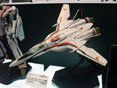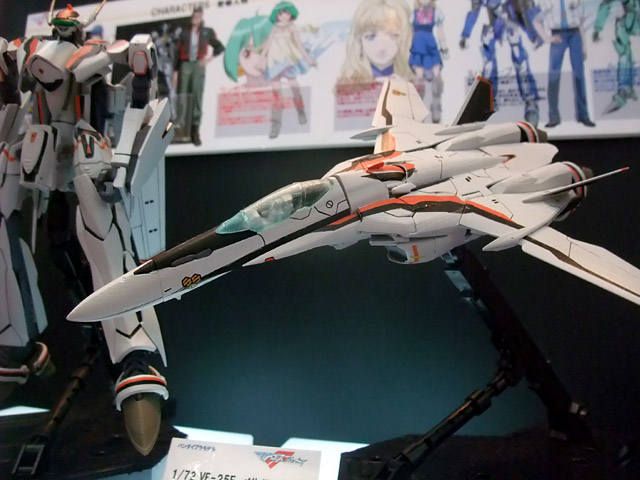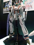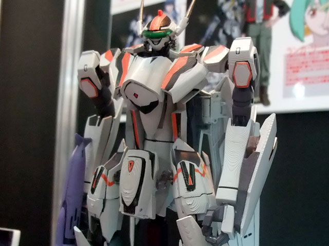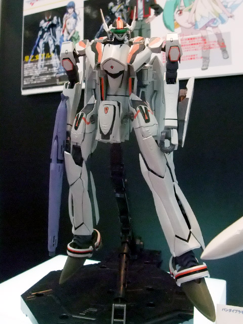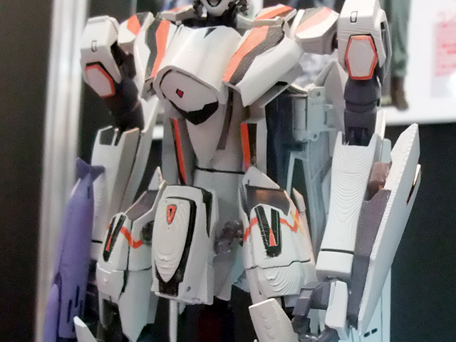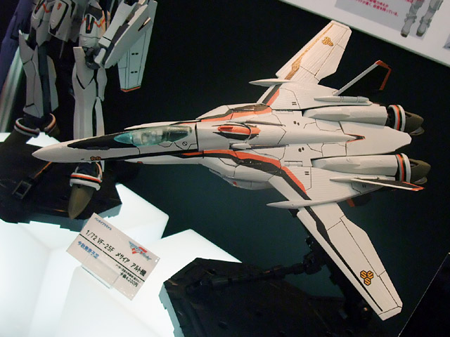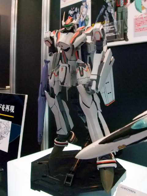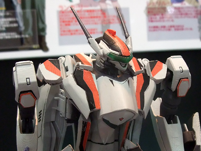 これは「マクロスFRONTIER」に登場する機体「VF-25F メサイヤ」のアルト搭乗の機体を、完全変形モデルとしてプラモにしたもので、会場で掲示されていたPOPによると