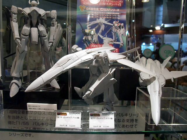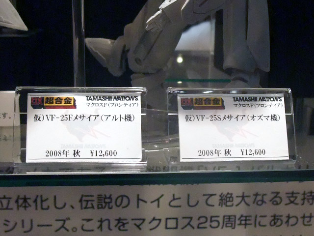 なお、POPによると、「DX超合金 VF-25Fメサイヤ(アルト機)」と「DX超合金 VD-25Sメサイヤ(オズマ機)」が価格は税込12,600円で、2008年秋発売予定となっているみたいで、サンプルも展示されていたみたいです。