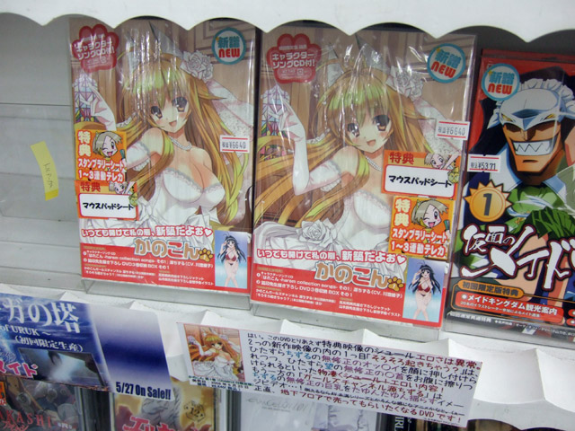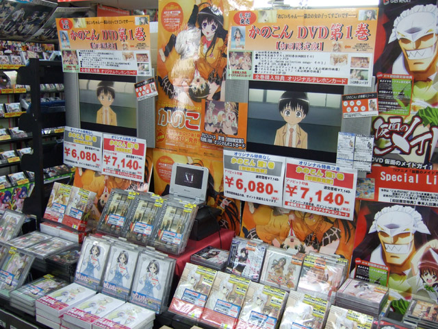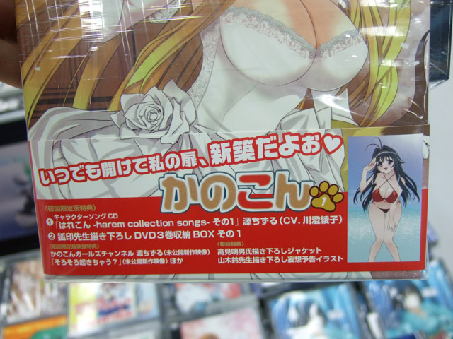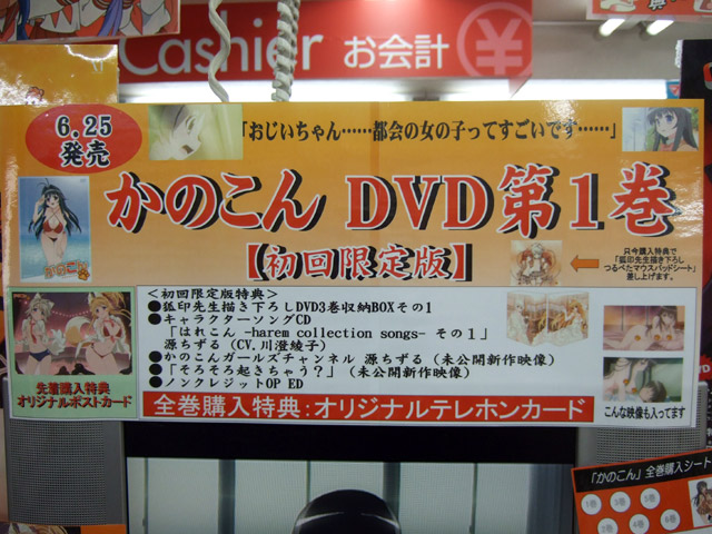 6月24日、DVD かのこん 第1巻「初回限定版」(AA)、「通常版」(AA)が発売されました。本編もさらにエロの方向に修正されていますが、今日もやられやくさんのかのこんDVD1巻 修正点他・・・エロすぎですによると「ただエロがあるのみです!」とかかれ、とらのPOPでも「無修正の巨乳をたゆんたゆん揺らすイメージビデオ」というくらいエロい2種の映像特典が収録されていますw