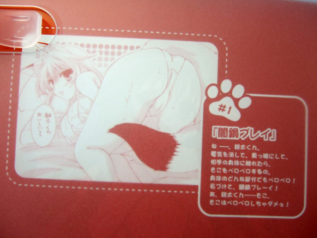ジャケットの裏側には『ね━━、耕太くん。電気を消して、真っ暗にして、相手の身体に触れたら、そこをペロペロするの。身体のどんな部分でもペロペロ!名づけて、闇鍋プレ~イ!あ、耕太くん・・・・・・そこ、そこはペロペロしちゃダメぇ!』と書かれた「闇鍋プレイ」の様子?がw