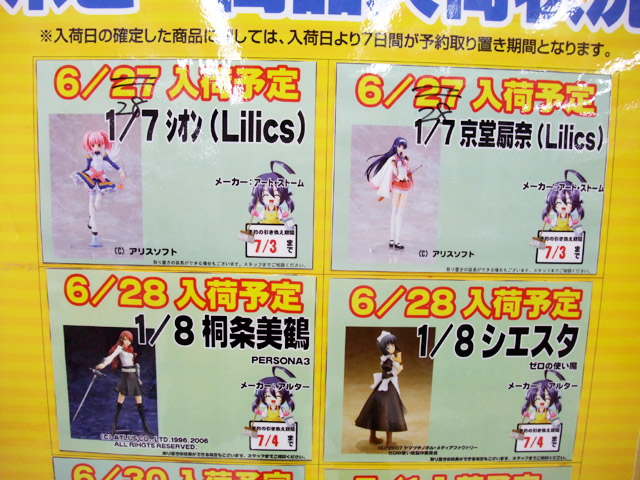 他、メガハウスやアルターの新作など、割と数多く掲示されていて、6月末~7月頭の購入計画にお役に立つかと思ったので、以下にまとめてみましたのでどうぞ~!