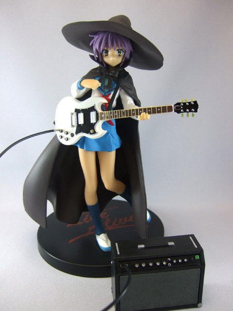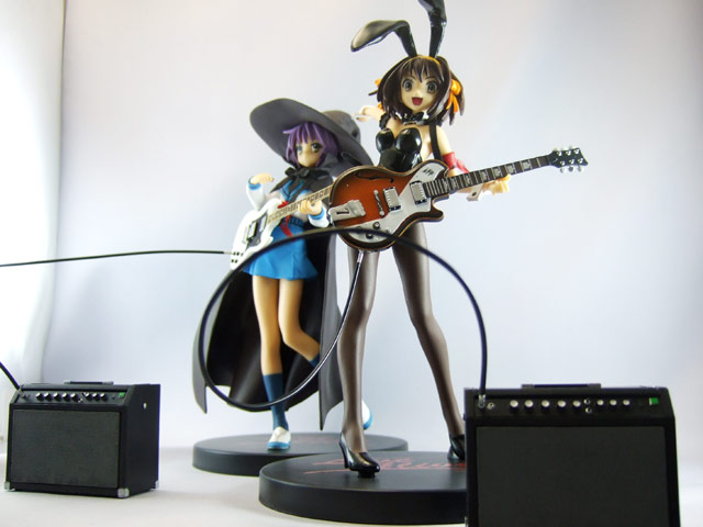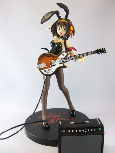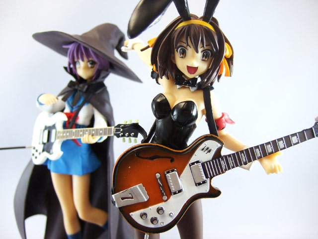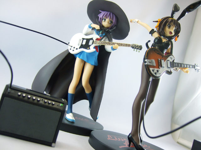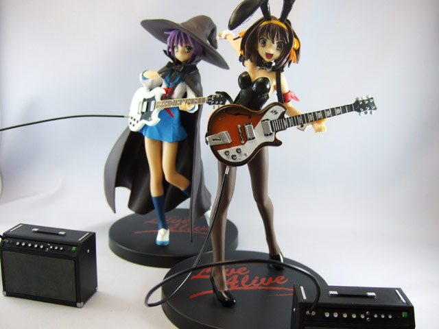 これは、アニメ「涼宮ハルヒの憂鬱」の第12話「ライブアライブ」で登場した、学園祭でのハルヒと長門の演奏シーンを再現したフィギュアで、セガプライズの商品説明によると『今にも弦をはじきそうな躍動感ある造形に注目!バニー姿のハルヒと魔法使い姿の長門有希が登場です。』と紹介されています。