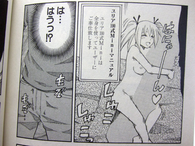 6月27日、寸止めダッチワイフコミック「ユリア100式 7巻」(AA)が発売されました。今回もゴムをかぶせて絶縁とか、ア○メ後の顔は生き仏とか、巻末の描き下ろしコミックでは、棒にしがみついたり、先っちょペロペロとか、相変わらずの笑えるエロネタ満載w もちろんユリア以外でも、アメリカンなルーシーMkIIや、ロリ系の108式もいろんな意味で暴走していますよ!w