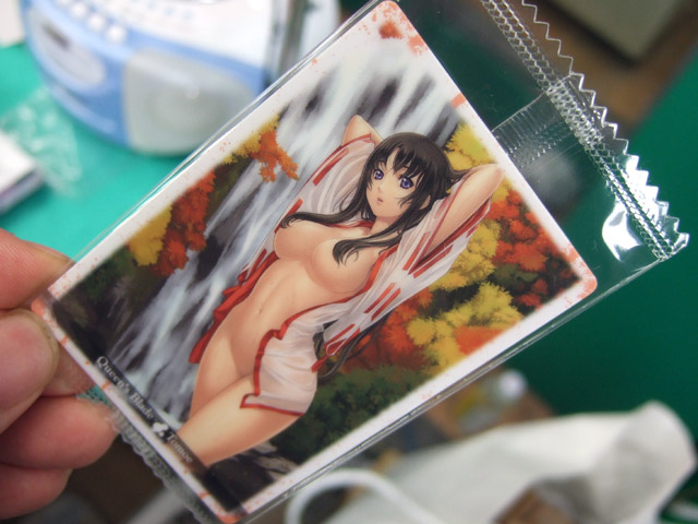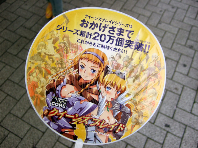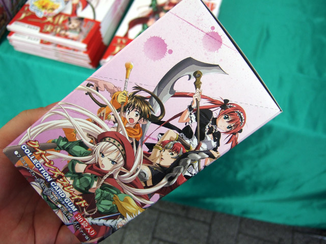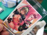 6月28日「クイーンズブレイド祭 in AKIBA」が開催され、コトブキヤラジオ会館店頭では、メガハウス「クイーンズブレイド コレクションカードガム」(AA)の先行販売がされていました。これは、クイーンズブレイドのキャラクターを、描き下ろしを含む、全30種類のプラスチック製のカードにしたトレカ入りの食玩となるものです。店頭には時たまトモエのコスプレさんもいたりしました。