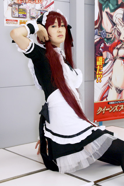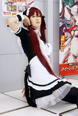 6月28日に開催された「クイーンズブレイド祭 in AKIBA」は、えぃわ氏・F.S氏サイン会、開発担当者トークショー、チャリティオークション、「クイブレ コレクションカードガム」(AA)の先行販売などの豪華イベントが目白押しでした!今回はコスプレ大会のレポです。画像は頭の上にむにゅっと乗せたり、アイリをモミっとしたりしていた、アグレッシブなメローナコスプレの方。