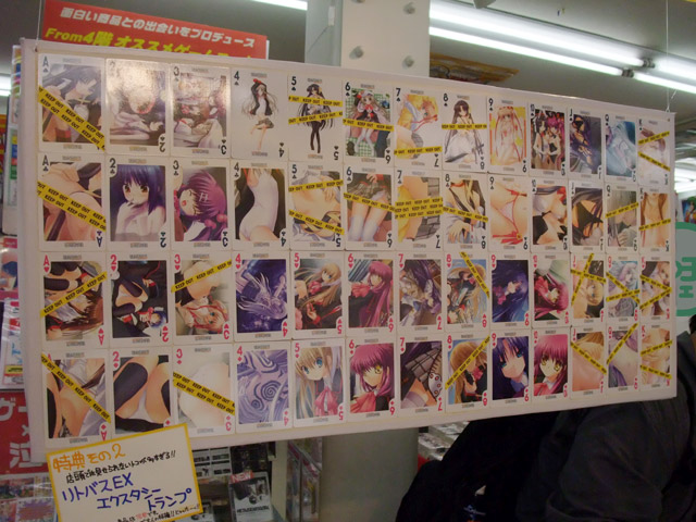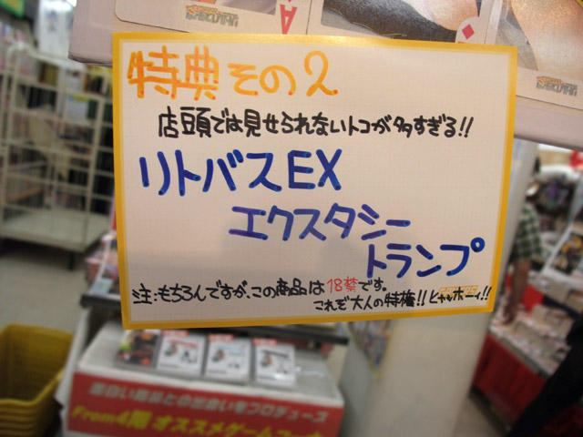 ゲマのPOPでは『特典その2 店頭では見せられないトコが多すぎる!!「リトバスEX エクスタシートランプ」注:もちろんですが、この商品は18禁です。これぞ大人の特権!!ヒャッホーィ!!』という『リトバスEXエクスタシートランプ』の絵柄が公開されていました。