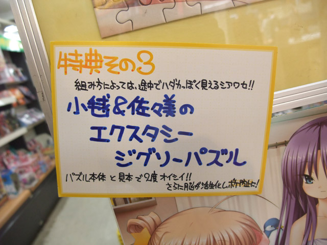 ゲマのPOPでは『特典その3 組み方によっては、途中でハダカっぽく見えるシアワセ!!「小毬&佐々美のエクスタシージグソーパズル」パズル本体と見本で2度オイシイ!!さらに能が活性化し、ボケ防止に!』と書かれている『小鞠&佐々美エクスタシージグソーパズル』のサンプル。
