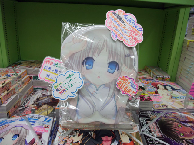 メロンブックスでも『わふ~・・・や、優しく触って下さいね・・・。特別ですよぅ・・。』『微乳を忠実に再現!!さわってみ。わふ~・・・お役に立てず申し訳ありません』と書かれたおっぱいマウスパッドのサンプルが展示されていましたw