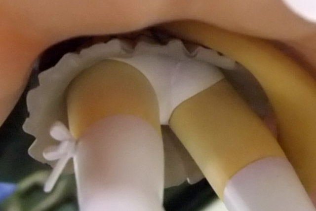 スカートのチェックはプリントではなく、塗装で再現されていました。