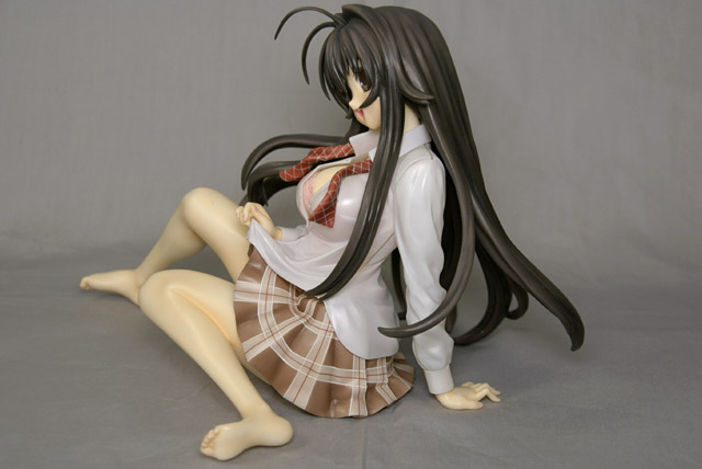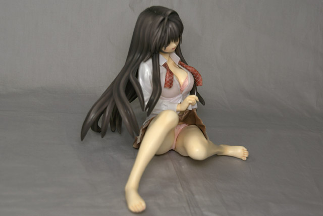 これは『「雌」の生殖活動(?)を無修正で描き切った』DVDも発売されている「かのこん」のキャラ「源ちずる」を「ビースト・オブエロス」らしく?自らスカートたくし上げたポーズで立体化したもので、あみあみの商品説明によると『フェティッシュなシチュエーションを立体化するコトブキヤの新レーベル、フォー・リーヴス。第1弾は原作自体がお色気満点で、コミックスやアニメ等も展開して話題の 『かのこん』 のヒロイン、長い黒髪と巨乳の美少女「源ちずる」です。こちらを誘うようにスカートを摘み上げる仕草によって露わになったフトモモ、はだけた胸元から覗く魅惑の領域に視線は釘付け?衣服の存在感を表現するために、ボディとのクリアランスを考え、1/5スケールという大きなサイズで商品化しました。また、下着の存在感をアピールするためにパーツ分割を考慮し、まるで下着が別パーツのように見える造型に仕上げ、シャツはクリア素材に塗装を施す事により、肌や下着を透けさせ、その存在感を更に主張させました。あえて靴やソックスは造型せず、裸足フェチにもたまらないシチュエーションになっています。一つの造型に様々なフェチ要素を絡ませたこの商品に、クッションがベースとして付属!その素材にはフェティッシュな色や質感を選定いたしました。』と紹介されています。