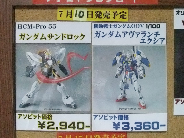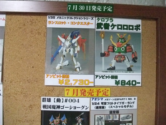 キャラシティ2Fの、バンダイもの+αの新作入荷情報POPが、7月のものに更新されていました。それによると、バンダイ「MG RX-78-2ガンダムVer.2.0」(AA)は、7月24日頃入荷予定みたいです。