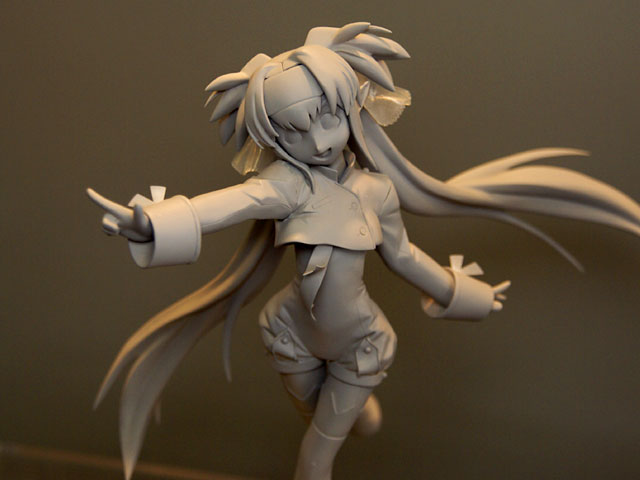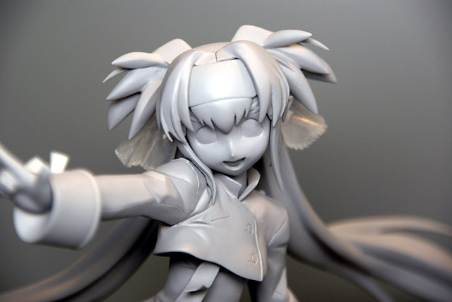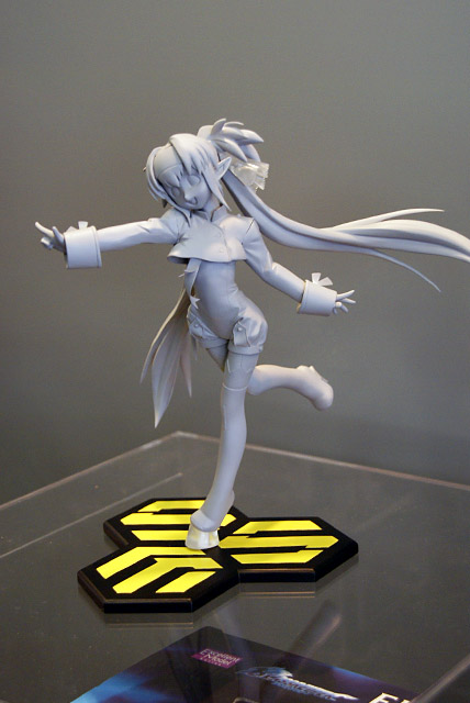 7月11日に開催された「メガホビEXPO2008」での、アルファオメガ「マクロスFRONTIER クラン・クラン大尉」の無彩色サンプル展示の様子をお伝えします。これは「マクロスFRONTIER」のキャラ「クラン・クラン大尉」を、マイクローン化した「幼い少女体型」で立体化したものです。はじける笑顔走り出したかのようなポーズは、もはや完全に「おさなくてかわいい」幼女w