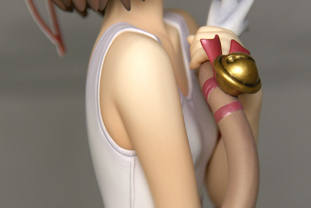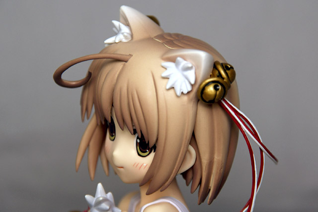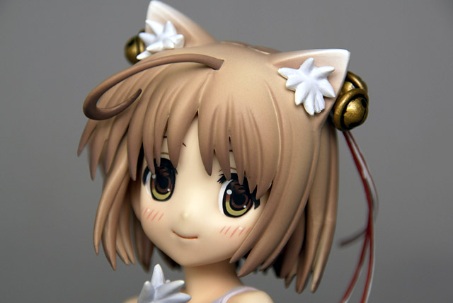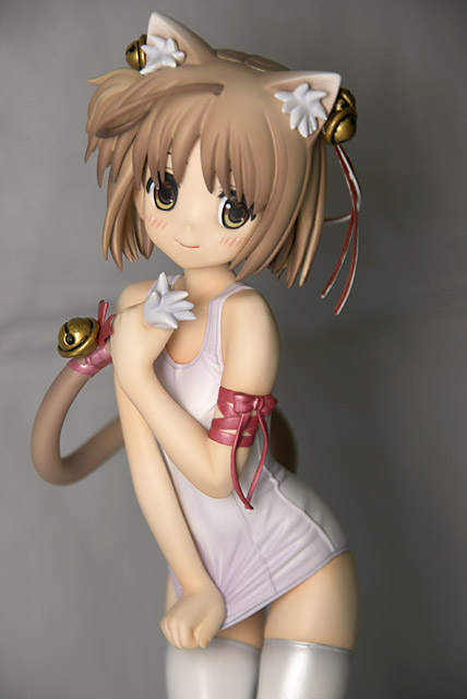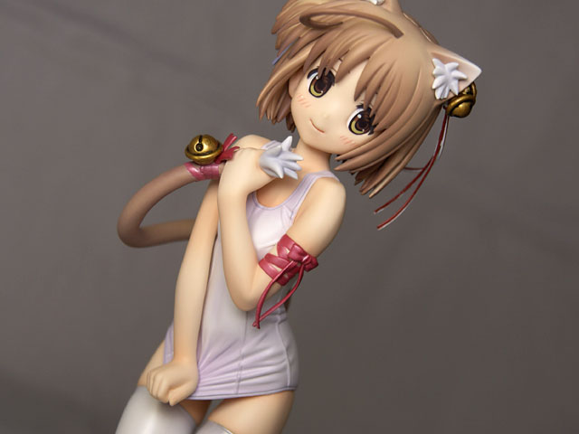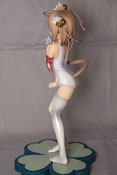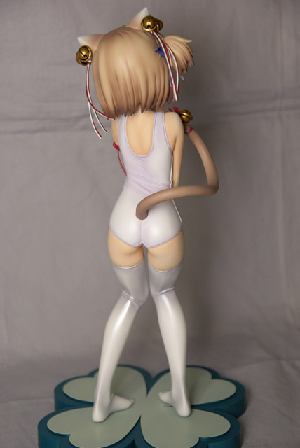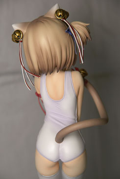 これは、以前キャストサンプルをお伝えした「ちびっこロリ体型、スクール水着、ネコミミ&尻尾、オーバーニーソックス、鈴・・・と、萌え要素をこれでもかと詰め込んだ愛らしい姿」という、「よつのは 猫宮のの ねこみみスク水オーバーニーソVer.」(AM)(参考サンプルレビュー)のスク水を白にしたワンフェス2008夏限定品となるものです。
