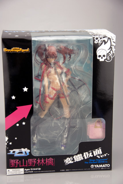 やまとの商品説明によると『凛々しさとハレンチさを兼ね備えた、野山野林檎がSIF EXシリーズで登場!大暮維人氏原作の「エア・ギア」の作中で、変態仮面として登場した野山野林檎を、凛々しくそしてハレンチに再現、カッコよくPVCフィギュア化されます!パーツの素材感を重視した彩色に、コダワリの造形。作中に登場するバッグもオプションパーツとして付属します。』と紹介されています。