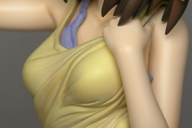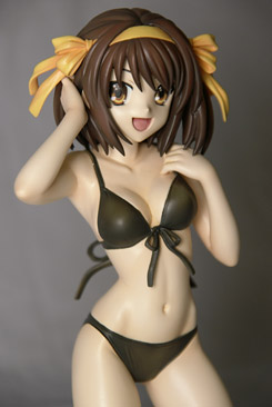 コトブキヤ「涼宮ハルヒの憂鬱 涼宮ハルヒ ビーチサイドVer.」(AM)のサンプルレビューです。これは「涼宮ハルヒの憂鬱」のキャラ「涼宮ハルヒ」を、メガミマガジンの描き下ろしイラストを元にタンクトップ&黒ビキニ姿で立体化したものです。タンクトップはキャストオフ可能となっていて、純粋な黒ビキニ姿にすることも可能です。水着だからか、かなーり食い込んだ造形でした!w
