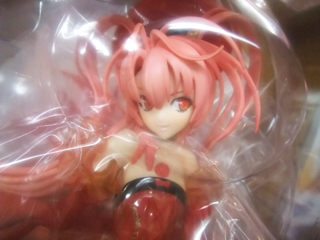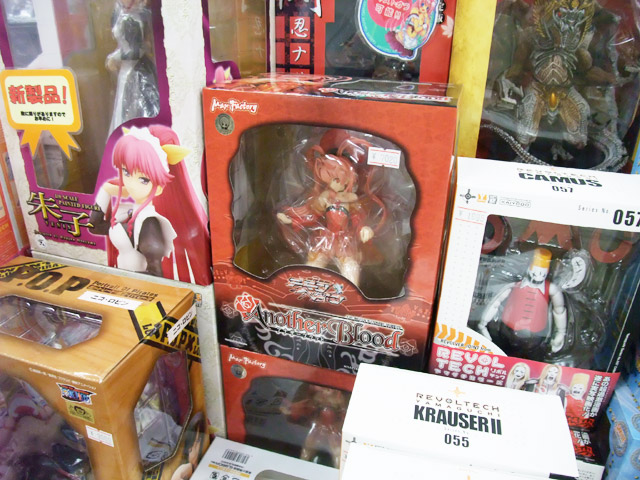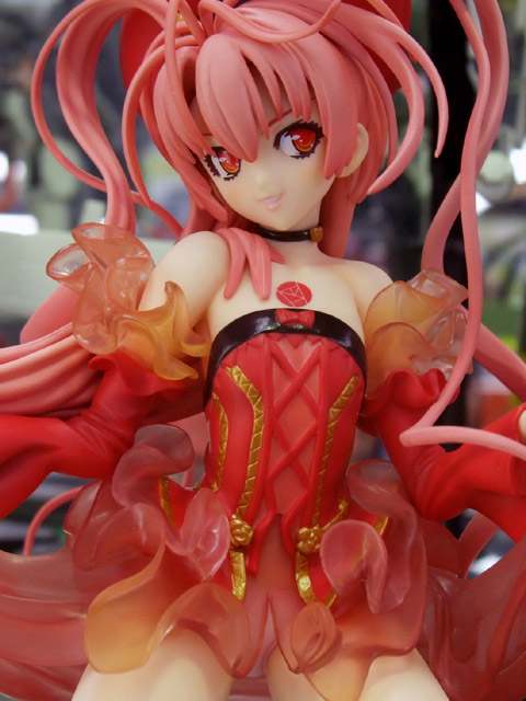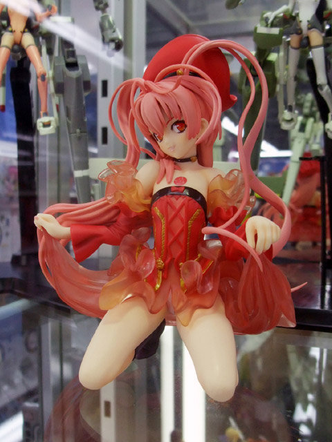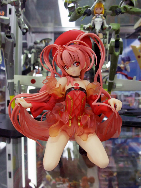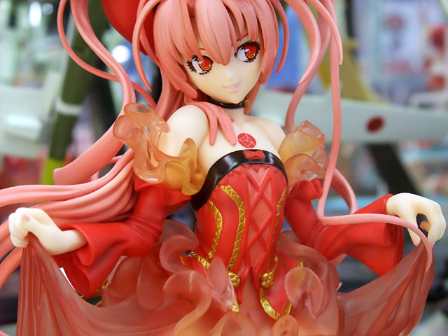 これは、以前サンプル展示もお伝えした、エロゲPCソフト「機神飛翔デモンベイン」(AA)のキャラ「アナザーブラッド」を立体化したもので、マックスファクトリーの商品説明によると【2006年5月にニトロプラスより発売した3Dアクションゲーム『機神飛翔デモンベイン』より、紅いドレスの謎の少女 「アナザーブラッド」が登場です。「血」をイメージさせる印象的な紅いコスチュームを鮮やかに表現。挑発的なポーズや表情、クリアパーツのスカートから覗く太股が何とも魅惑的。文字通りの「紅の少女」を見事に再現したファン必須のアイテムです】と紹介されています。