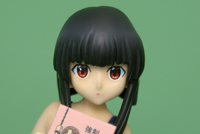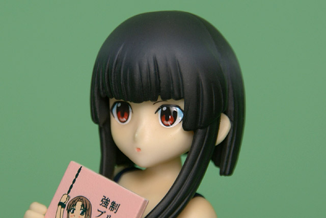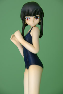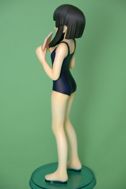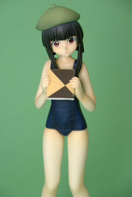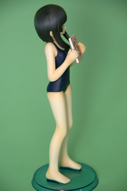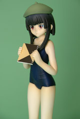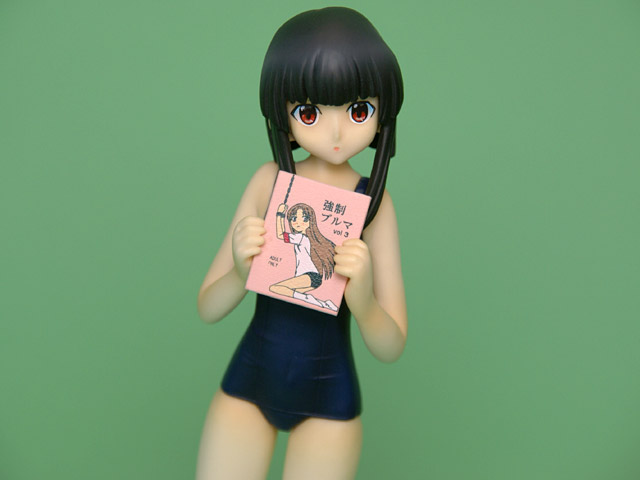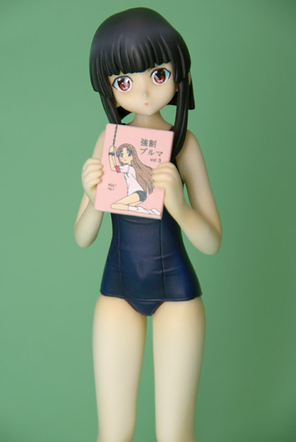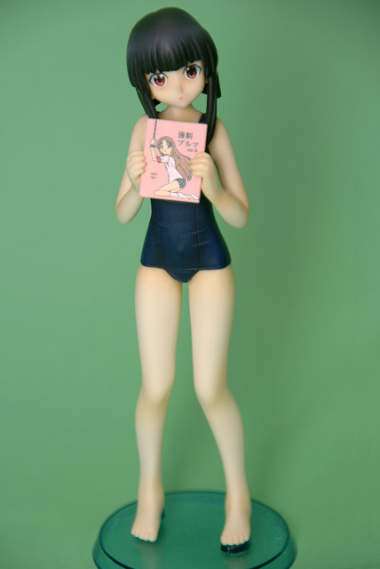 これは、以前サンプルレビューお伝えした「長菜なじみ」(AM)同様「ドージンワーク」のキャラ「露理」をスク水姿で立体化したもので、ウェーブの商品説明によると『大人気作品「ドージンワーク」より、不思議系な同人作家の女の子「露理」をPVC完成品でフィギュア化。スクール水着にベレー帽、スケッチブックを持たせて露理らしさを再現しています。ファンにはうれしい、同人誌「強制ブルマ」も付属。』と紹介されています。