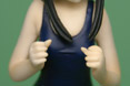 おへそが浮き出るくらいぴったりフィットしたスク水。