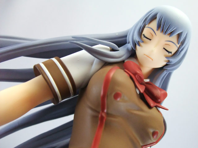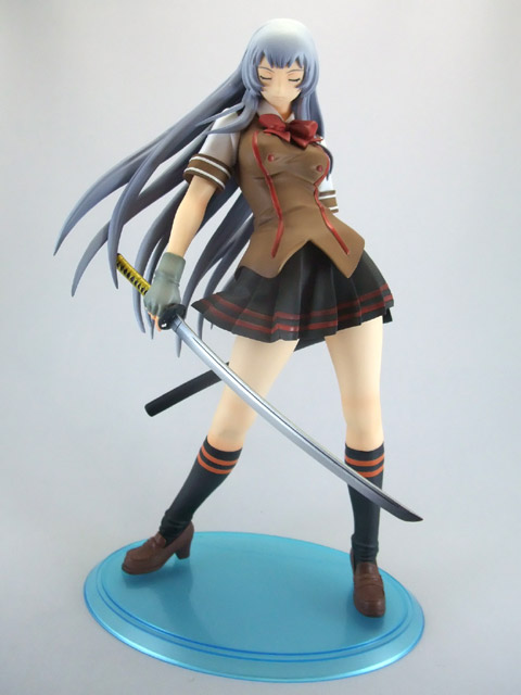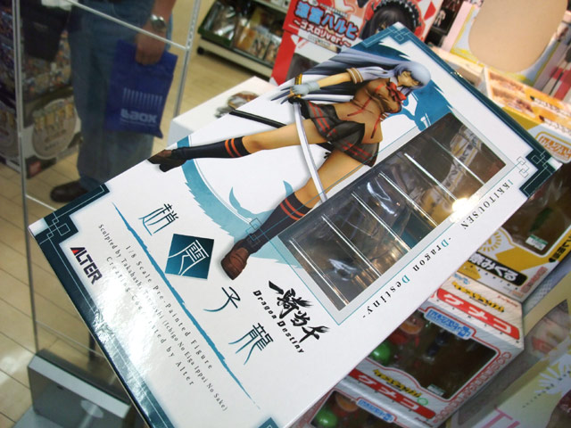 これは、以前ワンフェス2008冬でのサンプル展示をお伝えした、5月に発売された「関羽雲長」(AA)(参考レビュー)に続く、アルターのちゃんと服を着てる「一騎当千」シリーズの第2弾で、あみあみの商品説明によると【美少女ハイパーバトルアニメ『一騎当千 Dragon Destiny』より、”趙雲子龍”が登場します。常に眼を閉じて戦う、独特の雰囲気をもつ彼女。風を受けて広がる髪の流れや、それを支えるように強いS字のカーブを描く精悍なポージングはまさに劇中のイメージそのもの。刀の柄やスカートのプリーツなど細かな箇所にも質感や情報を与え、落ち着いた立ち姿の中にも力強さと研ぎ澄まされた緊張感が漂います。】と紹介されています。