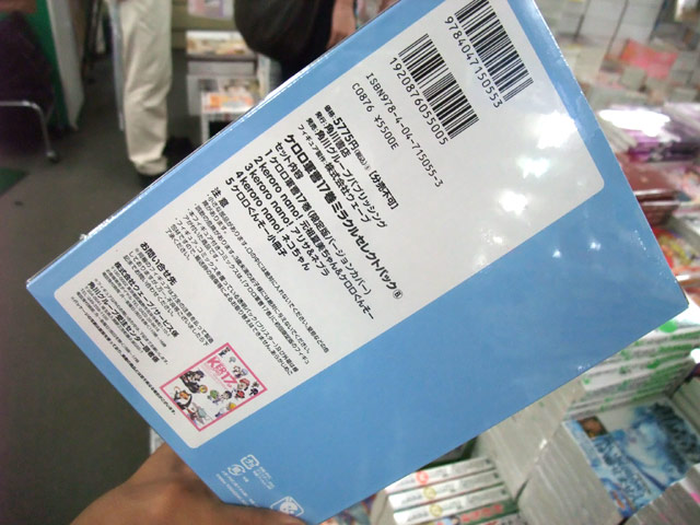 吉崎観音×ウェーブの強力コラボレーションで実現!初回限定生産!確実に手に入れるなら予約を!満を持して贈る!漫画だけにとどまらず、さまざまなフィギュアのデザインを務める吉崎観音完全監修ケロロ軍曹のキャラクターフィギュア付き限定版が登場。選べるフィギュアセットは3種類。セレクトパックB・CはセレクトパックAにさらにお宝フィギュア2点が付いた豪華版。きみだけのミラクルセットを手に入れよう。』と紹介されている、3種のセットのうちの一つで、このAセットは『1998年別冊ニュータイプに掲載された「ケロロぐんそー」から、かれこれ10年。当時のケロロと夏美を愛らしいデザインにデフォルメし「keroro nano!」として復活!
