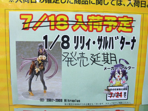 7月18日、アキバのいくつかの店舗にて、8月29日発売予定のエロゲ「昇龍戦姫 天夢」(AA)のデモ&体験版配布会が行われ、何度かご紹介したことのあるナマダさんがコスプレされていました。他、パンツと股間の間に「女の子汁」なフィギュアギガパルス「恋姫†無双 関羽」(AA)、コミック ケロロ軍曹 17巻ミラクルセレクト「パックA」「パックB」(AM)、「パックC」(AM)発売等。
