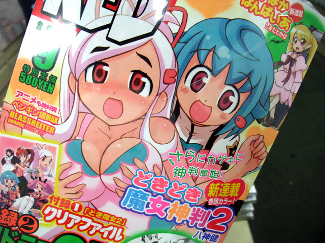 表紙は今月から新連載の「どきどき魔女神判!2DUO」の、「オッパイマウスパッド」(AM)の発売もきまっている超巨乳キャラ「羽織くれは」が「聖花ころん」に乳もまれてるイラストでしたw