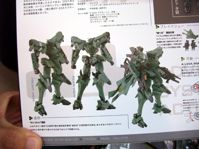 セット内容はF-22A ラプター×1、手首、跳躍(ジャンプ)ユニット×1組、AMWS-21 戦闘システム×2、ガンマウント×1組、ガンマウント(空)×1組。