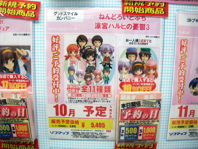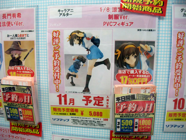 ソフマップアミューズメント館では、キャラアニ「涼宮ハルヒの憂鬱 涼宮ハルヒ 制服Ver.」(AM)とグッドスマイルカンパニー「ねんどろいど ぷち 涼宮ハルヒの憂鬱#03」(AM)の予約受付が開始していました。