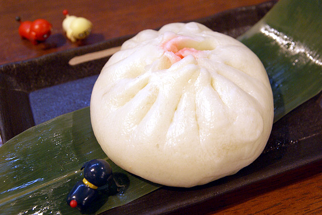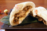 こちらが「爆乳肉まん」。「おおぶりな具がごろごろ入った、はじける肉まんです。」