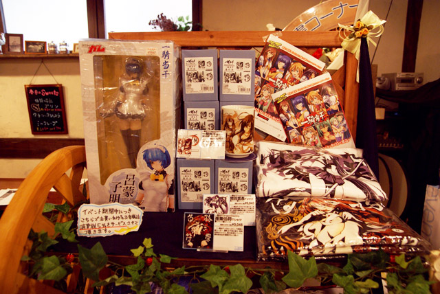 ぐるりと店内を見渡すと、落ち着いた照明の中展示された 抱き枕カバーや、アニメイラストが目に入ります。