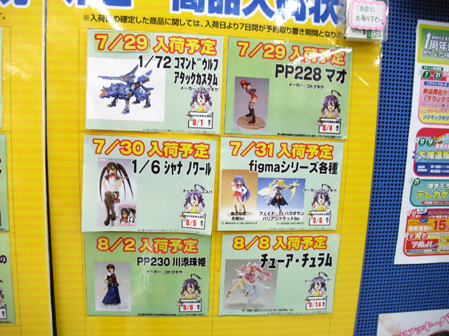 ソフマップアミューズメント館で、7月下旬~8月上旬の新作フィギュア入荷予定表が公開されました。