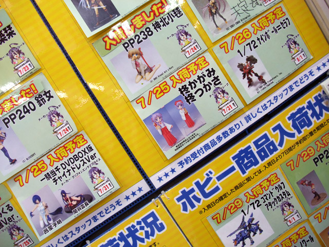 ソフマップAM館で、7月下旬~8月上旬の新作フィギュア入荷予定表が公開されました。それによると、マックス「figma なのはS フェイト」(RA)と、「figma 泉こなた」(AA)は7月31日予定みたいです。他、やまと「エア・ギア 野山野林檎 変態仮面」が29日、コトブキヤ「猫宮のの ねこみみスク水オーバーニーソ」(AA)が8月2日、アルター「チューア・チュラム」が8月8日とのこと。