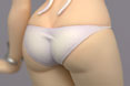 サイズの小さめな白ビキニが容赦なく食い込んでいる腰や、スージーさんはないものの、ものすごい密着感のある股間部分、そして、きゅっとはりついたケツの食い込み・・・360度どこを見てもエロイです!w