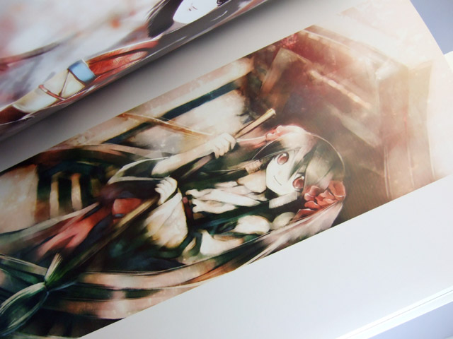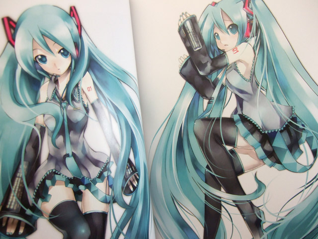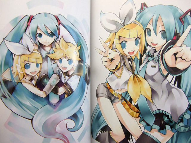 巻頭では、初音ミクのフィギュアの元イラストや抱き枕カバーイラスト等のほか、鏡音リン・レン等、ボーカロイド関連のイラストが満載で、いくつか描き下ろしも掲載されています。