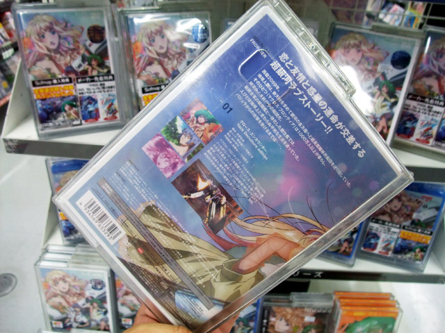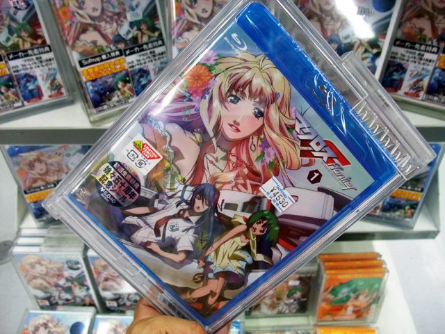 DVD「マクロスF(フロンティア) 1巻」(AA)のゲームシティでの販売の様子。