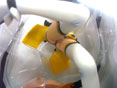 腕で圧迫されたヨコチチのつぶれ具合もいい感じ。