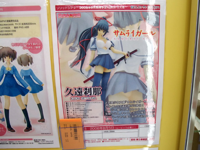 ソリッドシアター「サムライガール 久遠刹那」(AA)のサンプル展示が、ゲーマーズ本店のゲーム館(新館)6Fのフィギュアコーナーにて開始しています。これは、以前WHF有明18FINALでの展示もお伝えした、</PCアニメーションノベル(18禁)もあるフランス書院のノベル『サムライガール』のキャラ「久遠刹那」を立体化したものです。デフォでパンツはいてませんでしたw