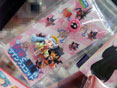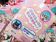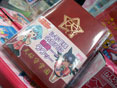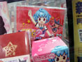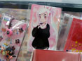 他、左からツインマスコット、天桜守学園生徒手帳、スペシャルCD、魔女チェックカードのサンプル展示の様子。