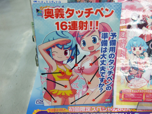 29日には「奥義タッチペン16連射!! 予備用のタッチペンの準備は大丈夫ですか?」として、乳やおへそにタッチマークの付いたイラストPOPが追加されていましたw