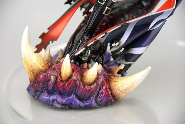 商品説明で「人外を形どった台座の作りこみも圧巻です!」と書かれているように、台座部分の人外の牙や舌などの質感や、おどろおどろしい雰囲気は、ここだけでもクリーチャーものとして通用しそうなくらいすごいことになっていますな!
