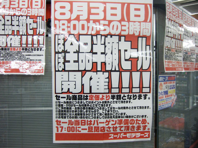 ぷちアキバ情報スーパーモデラーズで、8月3日18時からほぼ全品半額セール開催!