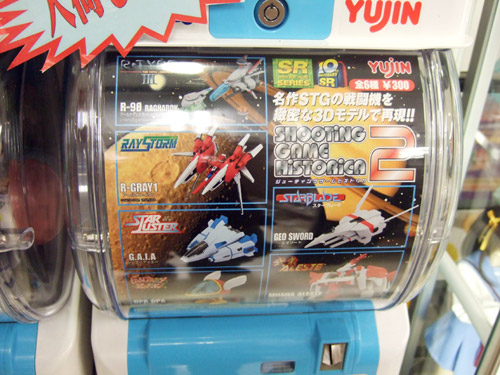 Yujin「SR シューティングゲームヒストリカ2」(RA)が7月下旬には発売され、アキバのいくつかのショップのガチャコーナーにて販売開始しています。これは、2007年12月に発売された「シューティングゲームヒストリカ」の第2弾となるもので、左の画像のR-9スラッシュゼロや、R-GRAY1、オパオパ、武者アレスタ等、全6種類がラインナップ。そのミニレビューをお伝えします。