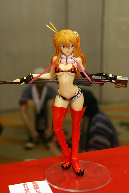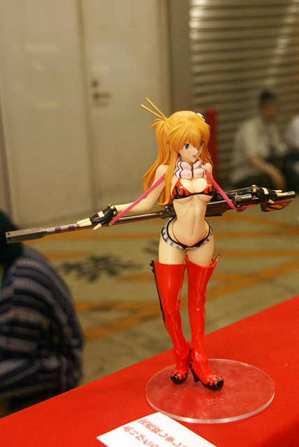 2008年8月3日に開催されたワンフェス2008夏のチェリーブロッサムブースでは、グレンラガンのヨーコのビキニブラ、ホットパンツに身を包んだエヴァのアスカというガイナ2作品のコラボ?な新作ガレキ「新世紀エヴァンゲリオン 惣流・アスカ・ラングレー ヨーココスプレVer.」の作例がありました。他、もうひとつの新作で、ブルマ姿の「CLANNAD 藤林杏」を合わせてお伝えします。