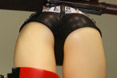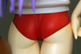 ホットパンツから覗く赤いパンツのヒモ部分や、きゅっとホットパンツの食い込んだお尻がセクシーですな!w