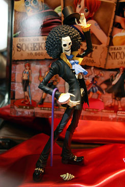 2008年8月3日に開催されたワンフェス2008夏のメガハウスブースでは、アルファオメガ「マクロスF クラン・クラン大尉」の彩色サンプルの他「クイーンズブレイドP-7 光明の天使ナナエル」(AA)、「THE IDOLM@STER 天海春香/高槻やよい」「Portrait.Of.Pirates ワンピースシリーズ NEO-6 鼻唄のブルック/ロブ・ルッチ」等を展示。その展示の様子をお伝えします。