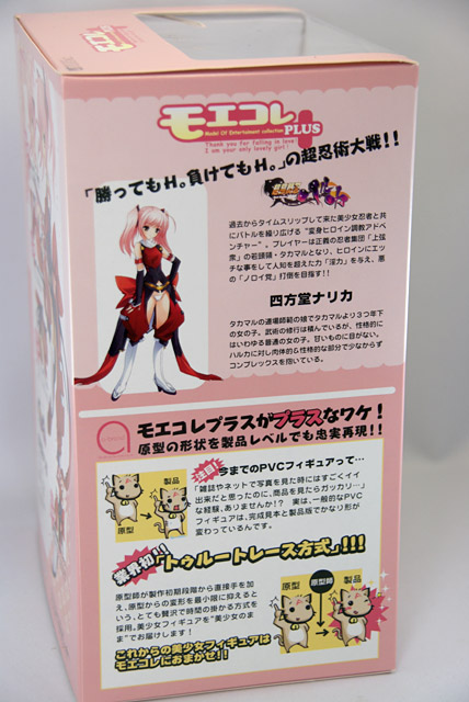 これは、以前サンプルレビューをお伝えした「ハルカ」に続き「超昂閃忍ハルカ」のキャラ「ナリカ」をモエコレPLUSとしてPVC完成品にしたもので、ボークスの商品説明によると