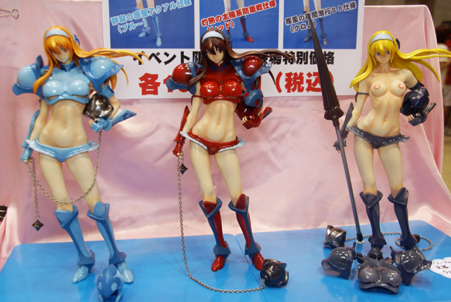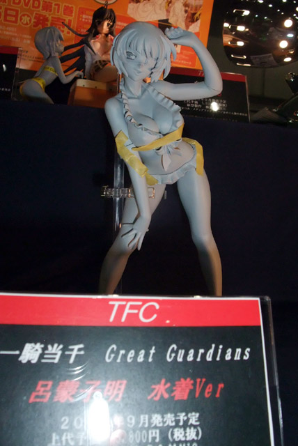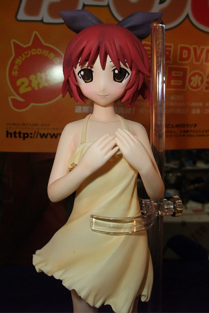 2008年8月3日に開催されたワンフェス2008夏での、いままでお伝えした以外の様々なメーカーブースの様子を7回に分けてお伝えします。こちらでは、トイズプランニング、やまと、らしんばん、タキコーポレーション、みやびやの全5ブースの様子をお伝えします。画像はやまとのZenko氏原型製作「SIF EX 絶対衝撃~プラトニックハート~ 伊勢島綾」の展示の様子。