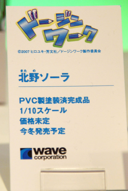 2008年8月3日に開催されたワンフェス2008夏での、いままでお伝えした以外の様々なメーカーブースの様子を7回に分けてお伝えします。こちらでは、ウェーブ、ダイキ工業、ボーメ屋、ワンダーショーケース、やすみちゃんち(クルシマ)の全5ブースの様子をお伝えします。画像はボーメ屋のガレキ「ToHeart2 XRATED 向坂環II」の作例サンプル展示の様子。